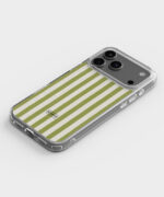 Geef je smartphone een frisse, tijdloze look met dit  leuke telefoonhoesje voorzien van een klassiek groen-wit streeppatroon. Het abstracte design met verticale banen zorgt voor een elegante en moderne uitstraling die overal bij past.
